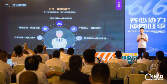 山東(dōng)17c在线观看新能源科技有限(xiàn)公司營銷總監陳虎現場帶來(lái)《齊心協力 衝向旺季(jì)》主題演講。陳虎認為,有專家表示空氣(qì)能可(kě)承接中國雙碳減排(pái)任務的15%,是能效和舒(shū)適度綜合效果佳解決方(fāng)案,特別(bié)是山(shān)東市場,在政策利好下,蘊含(hán)著千億級別的市場機遇。