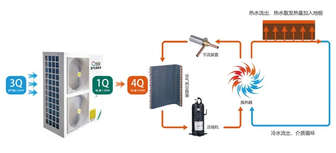空氣源熱泵是一種利用壓縮式製冷(lěng)原理,通過吸收和傳遞熱量,實現冷熱交換的設備。其核心(xīn)部件(jiàn)包括壓縮機、冷凝器、節流(liú)閥(fá)和蒸發器。在夏季製冷時,空氣源熱泵從相對溫(wēn)度較低的室內吸收(shōu)熱量,將其傳輸到相對溫度較高的室外,實現室內降溫。而在冬季製熱時,空(kōng)氣(qì)源熱泵則(zé)將室外的熱量吸(xī)收,傳(chuán)輸到相對溫度較高的室內,實現室內升溫。