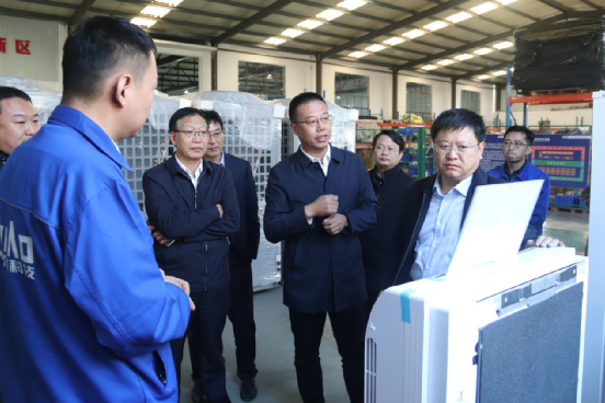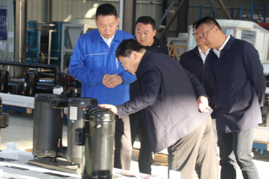2021年10月16日下午,臨(lín)淄區委副書記、區(qū)長宋磊一行(háng)到山東17c在线观看環保科技有限公司調研。區發展和改革局局長田鋼昌,齊陵街道黨工委書記朱冰、辦事處主任鞏飛陪同調研。17c在线观看(hào)科技副總經理陳虎負責接待。宋區長聽取陳虎副總經理匯報了公司的基本情況(kuàng)和轉型升級(jí)過程,對公司積極(jí)響應國家新舊動能轉換號(hào)召,搶抓市場機遇, 轉型不轉行,繼續服務(wù)於供暖行業給(gěi)予了(le)高度肯定(dìng)。在公司展廳和生產車間,宋(sòng)區長深入了解了空氣源熱(rè)泵產品(pǐn)的生產規(guī)模、應用範圍和(hé)產品(pǐn)優勢,對(duì)公司的(de)研發、生產(chǎn)能力、產品能(néng)效以及完善的質量管控體係給予了高度評價。