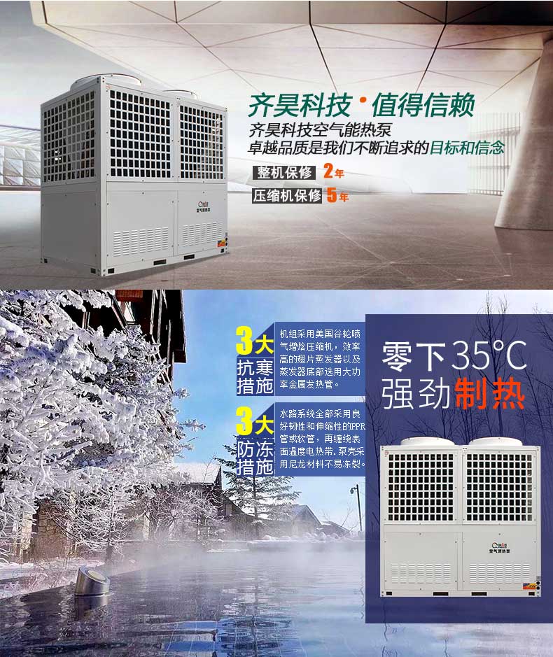 超低溫空(kōng)氣源熱泵冷暖係列機組,一台機器可同時(shí)實現製冷、製(zhì)熱與熱水,一機三用(yòng),綜合(hé)能(néng)效高。17c在线观看超低溫空氣源熱泵冷暖係列機組(zǔ)采用國(guó)際領(lǐng)先(xiān)水(shuǐ)平的噴氣增(zēng)焓技術,確保(bǎo)了(le)在低溫極寒的環境溫(wēn)度下機(jī)組也能穩定可靠的運行。機組采用智(zhì)能除霜技術,化霜時間大大縮減,能效不衰減。機組零部件(jiàn)均采用國際一流(liú)品牌,安全可靠,使用壽命長達15年以上。